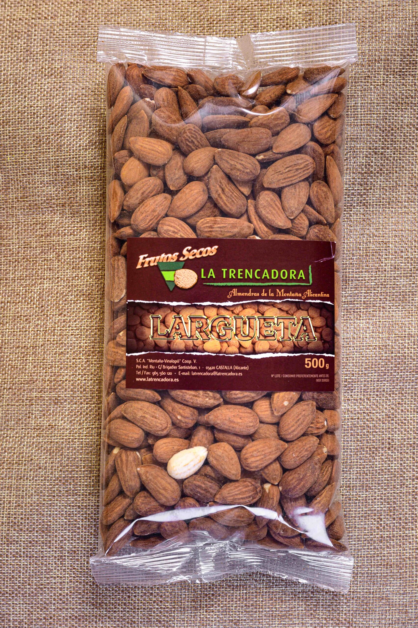Almendra largueta natural, que destaca por su forma afilada, es un producto perfecto para su consumo como aperitivo bien sea frito, tostado o crudo. Su especial sabor hace que esta variedad sea ideal para elaborar diversos tipos de recetas y salsas.